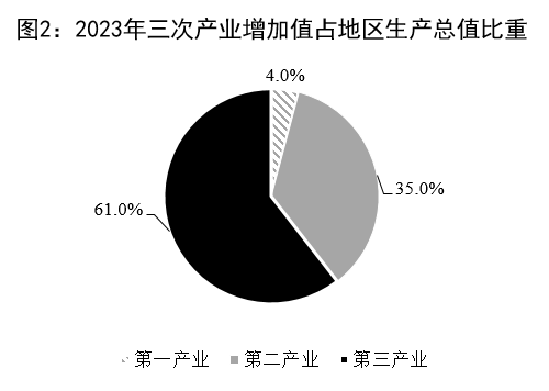三次产业结构比为4.0:35.0:61.0,“三二一”结构继续呈现。与上年比(3),第一产业比重下降0.1个百分点,第二产业比重下降0.3个百分点,第三产业比重提高0.5个百分点。