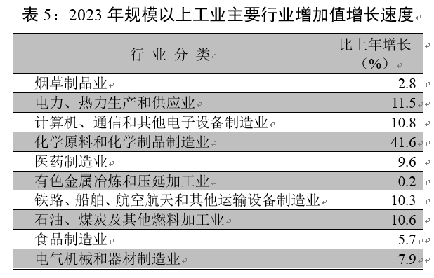 全市37个工业行业中,32个行业增加值呈增长趋势,其中占全市规模以上工业增加值比重前五的行业分别是:烟草制品业占比32.1%,增加值比上年增长2.8%;电力、热力生产和供应业占比11.0%,增加值增长11.5 %;化学原料和化学制品制造业占比8.6%,增加值增长41.6%;医药制造业占比7.0%,增加值增长9.6%;有色金属冶炼和压延加工业占比5.3%,增加值增长0.2%。