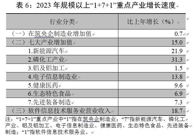 8.7大重点产业指新能源汽车、磷化工产业、铝及铝加工、电子信息制造业、健康医药、生态特色食品、先进装备制造。