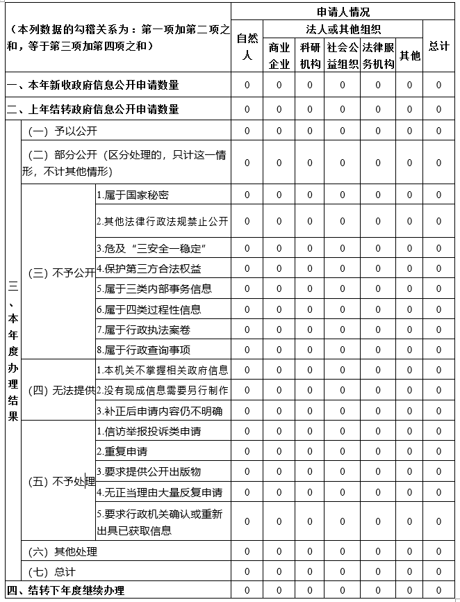 (二)依申请公开。我局于2020年12月被纳入依申请公开名单范围,截止2020年12月31日,未收到过信息公开的申请。