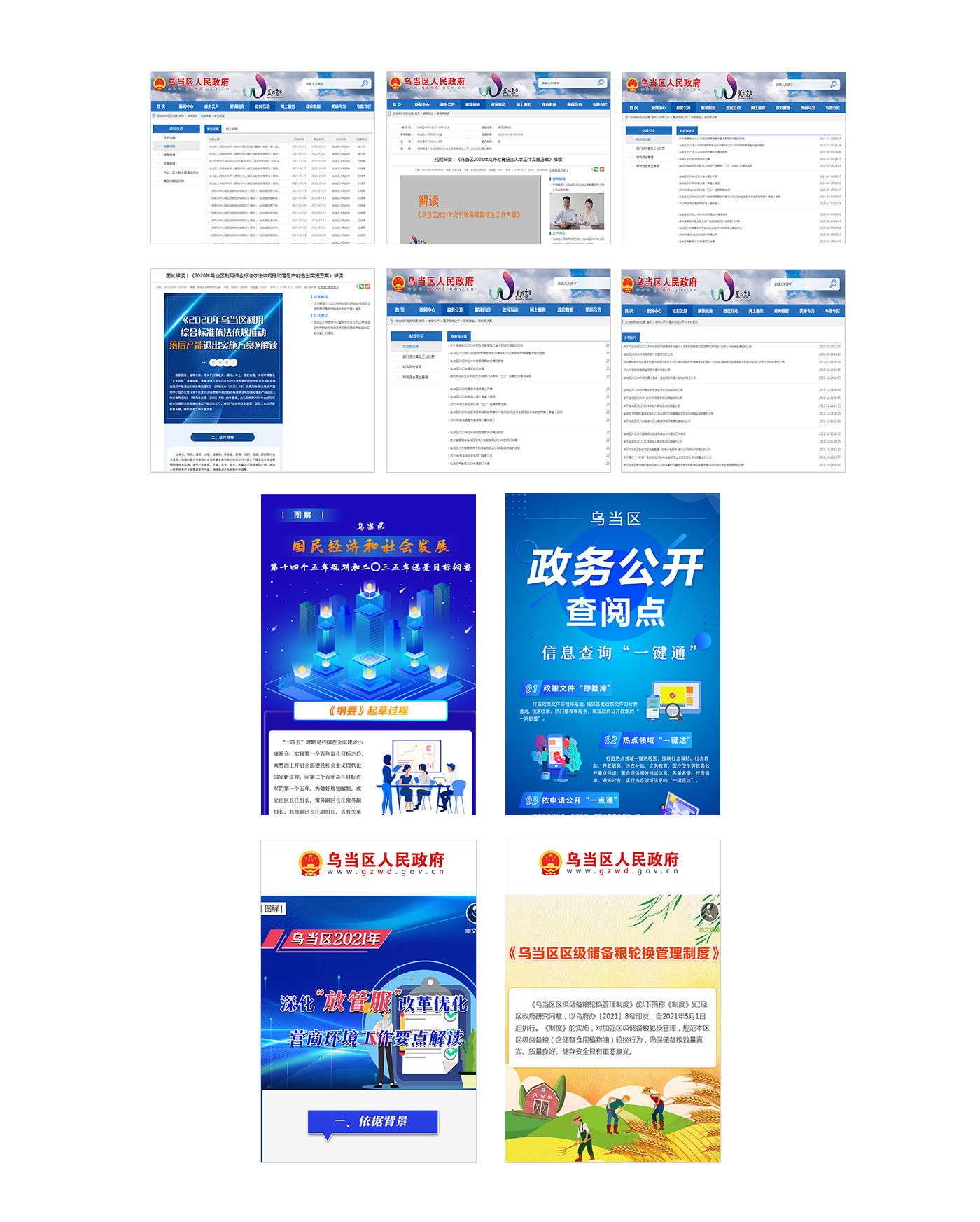 坚持创新发展,促进政府信息公开平台建设健康、高效运营,以区政府门户网站为政府信息公开核心平台,51个乡、镇(街道),政府工作部门及其他单位基层政务公开页面为内容建设重点,不断优化政府门户网站栏目建设(新增栏目1个,下线栏目3个)。常态化监管政务新媒体信息公开平台,对全区68个政务新媒体全部纳入全国政务新媒体报送系统监管(微信公众号24个,新浪微博34个,其他账号10个)进行常态化监测,确保新媒体信息公开平台健康运营。印发《乌当区人民政府办公室关于进一步加强政务新媒体管理工作的通知》,规范开设、变更、关停、注销等工作流程。创新研发了政务公开“一键通”信息查询平台,打通政策落实“最后一公里”。将乌当区人民政府网、涉企服务平台、政务服务中心办事引导、便民地图等十余个政务公开服务内容整合开发,并在乌当区政务服务中心政务公开专区通过显示屏展示。