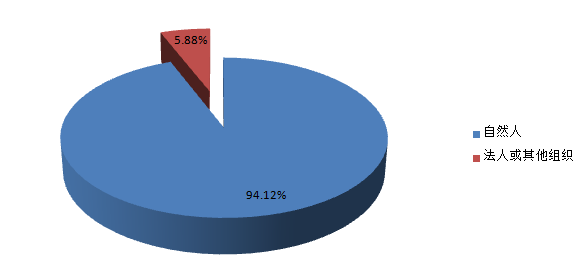 从申请人类型看,自然人申请件16件,占94.12%,法人或其他组织申请件1件,占5.88%。