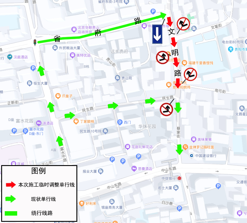 贵阳市公安交通管理局关于云岩区文明路管线入地施工期间临时调整交通组织的通告