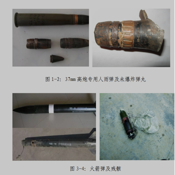 37mm高炮和火箭发射的人雨弹、火箭弹在空中催化后自爆或降落后会产生残骸,作业射程区域内可能掉落未爆炸弹头、未完全爆炸弹头碎片及火箭残骸,属正常现象。