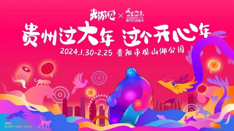 活动将于1月30日至2月25日在观山湖公园民族大联欢广场举办,共分为两大阶段。其中,1月30日至2月5日为大庙会阶段,以美食节、年货节为主;2月6日至2月25日为灯会阶段。本届主题灯会创意十足,首倡山地美学,联动知名设计师,与自贡灯艺团队合作,将《山海经》与贵州山地美学融合,协同贵州多民族文化内核,占地25万平方米,打造蛮荒纪、仙侠纪、复古纪、当代纪、未来纪、创造纪6大主题灯区的“贵州新年贺岁片”,近100组灯光艺术,创造了不容错过的山地美学与生活交汇的灯景奇观,构建贵州文化的当代性、世界观。