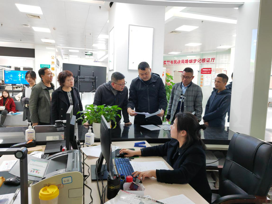 为进一步深化医保服务改革,全面提升医保政务服务水平、服务效率和质量,实现政务服务从“能办”向“好办”“易办”转变,近日,贵阳市医保局党组成员、副局长陈玮同志带领业务处室及局属单位相关同志走进政务服务大厅,转换角色、变换视角开展“我陪群众走流程”活动。