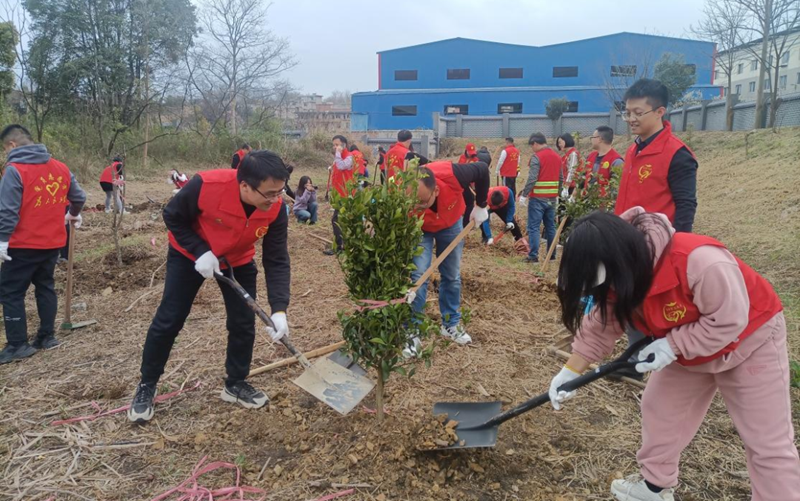 当天,贵阳市生态环境局组织机关第一党支部和第二党支部、环境突发事件应急中心党支部和环境信息中心党支部党员志愿者,与贵阳市水务管理局、贵州筑信水务环境产业有限公司党员志愿者,在牛郞关污水处理厂党员共建林开展义务植树活动。活动现场,党员志愿者们挥锹挖坑、扶树填土、提水浇灌,分工协作,默契配合,种下一棵又一棵的树苗,并为小树挂上各自的“认种牌”。经过两个多小时的共同努力,70余棵代表着生机和希望的树苗把牛郎关污水处理厂装扮得生机勃勃、绿意盎然。