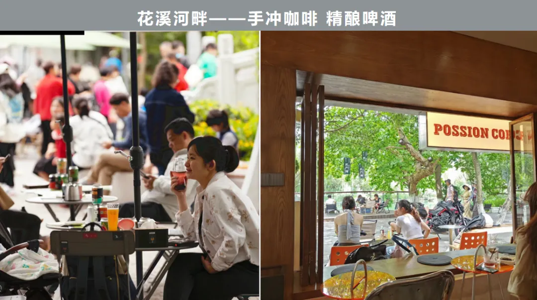 除了花溪牛肉粉传统美食打卡,十字街还有都市青年的休闲派对,白天,这里是水岸小众咖啡的聚集地,辣味咖啡、折耳根奶茶带你领略新潮的贵州味,夜幕降临,这里是各色中式古风与精酿啤酒碰撞的火花,城市露营地、水岸集市、猫的天空书咖……,传统美食被这里的新新人类玩出了花,没有吃不到,只有想不到,味蕾与激情都在这里得到尽情的释放。