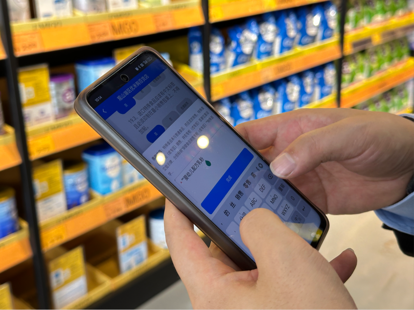 现场,执法人员重点对店铺内进口商品的标签标识、存贮条件、进口检验检疫手续、产品质量证明文件等方面进行了检查。检查中发现,店内特殊食品未与普通食品分区销售、冷冻柜未做温度控制记录、未张贴不得向未成年人售酒提示语等问题。对此,执法人员通过“黔食安”监管系统记录并反馈了检查情况,现场要求商家进行整改,确保特殊食品设立专柜(或专区)销售并设立相应的提示语,对冷冻柜开展温度监测并记录,完善酒类销售提示语。