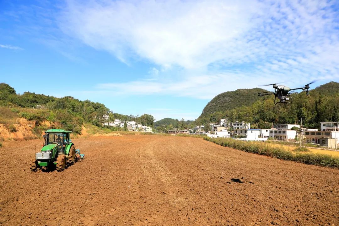 秋风拂过泥土翻新的田野,这里的油菜播种正赶着好天气展开。日前,记者来到观山湖区金华镇,观山湖睿峰粮油种植有限公司农机手运用旋耕机、播种机、无人机等多种农业机械,实现了4000亩油菜的机械化种植,让油菜种植跑出“加速度”。