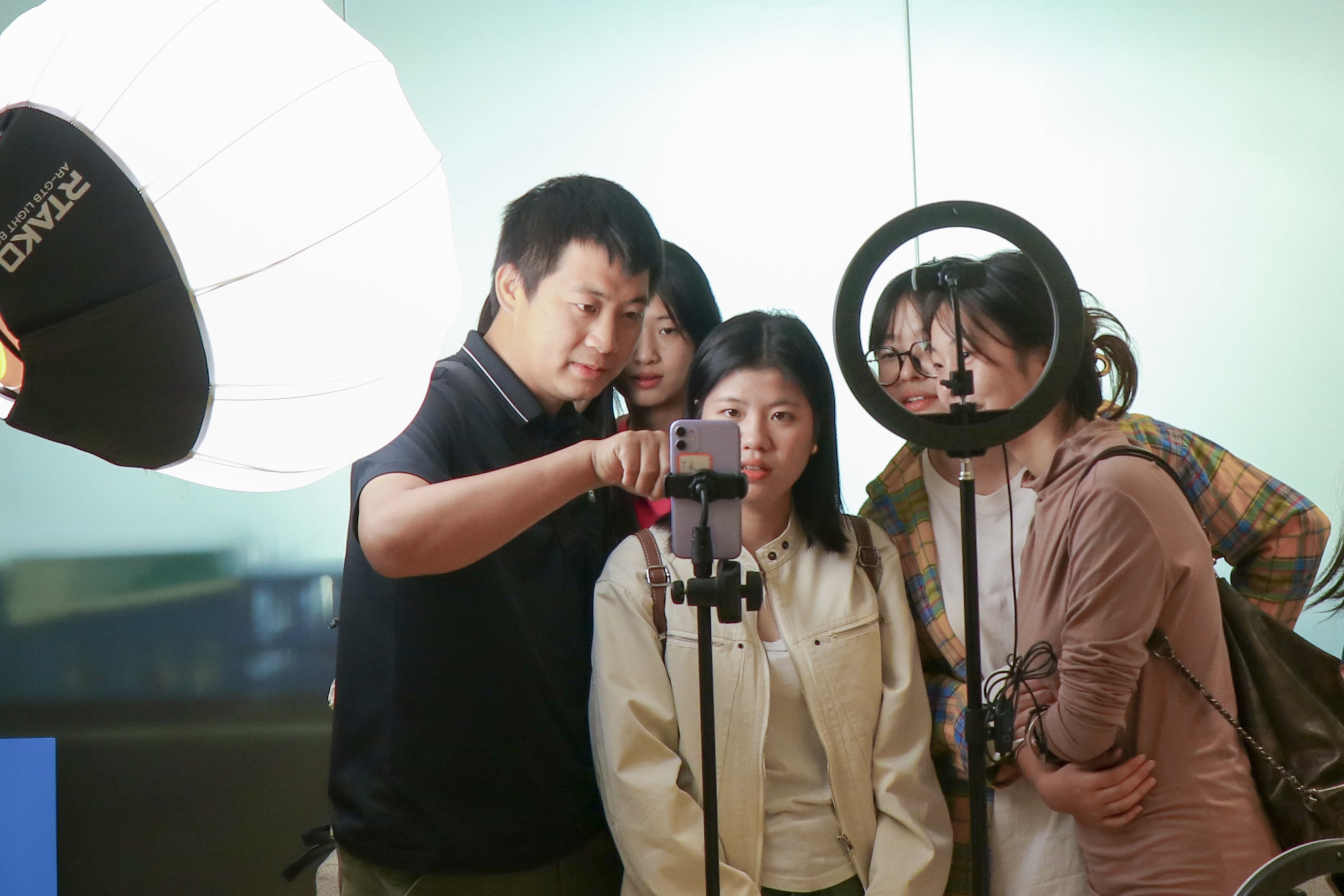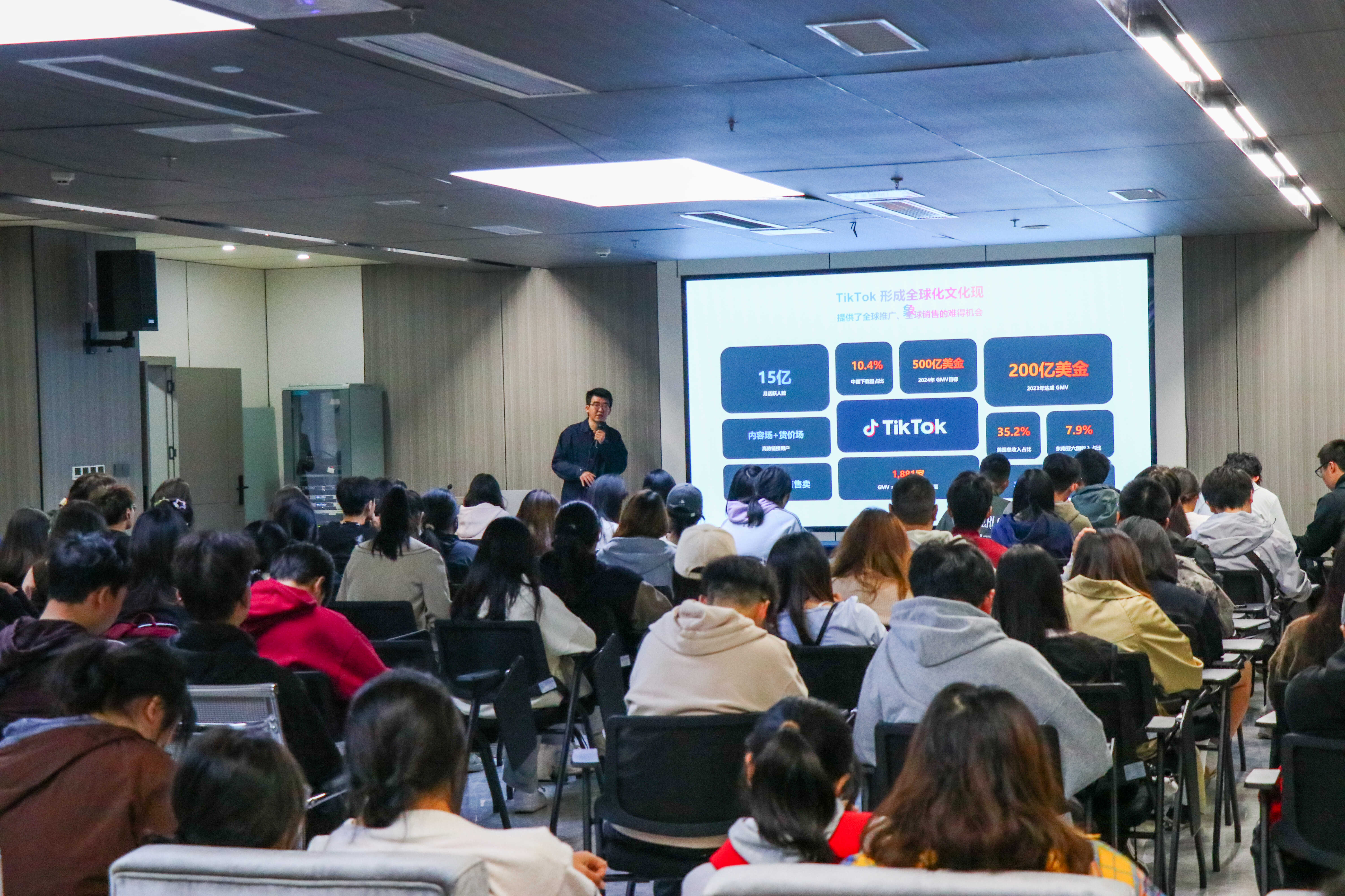 在产业园内,师生一行详细了解了贵阳综保跨境数字贸易产业园建设运营情况及跨境电商生态链打造成效。产业园运营单位贵州鲸飞数字供应链管理有限公司有关负责人为师生们进行了案例分享,详细讲解了物流运作模式、海关监管流程、跨境电商物流特点等知识内容。活动现场还分享了跨境电商专业知识、国际贸易基础、营销策略、风险防范等理论知识,以及站点建设、店铺开通、产品发布、数据分析等平台实操技能,旨在通过培训让学生们学习掌握跨境电商的基本知识和技能。当天,师生一行进行了分组参观,在直播间内沉浸式了解直播设备,亲身体验其功能和效果,学习运营策略、商品展示技巧等。