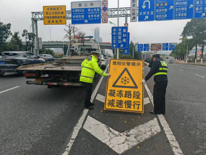贵阳交警将加强对易凝易冻路段的巡查工作,严格落实夜间24小时巡逻机制,强化路面动态管理,一旦发现路面积雪、凝冻等情况,及时联动采取应急措施。