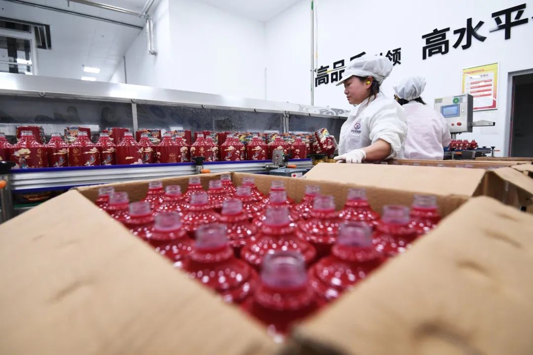 与此同时,不远处承载着深厚酱酒文化底蕴的贵州酱酒集团酒业生产有限公司,一排排先进的自动化包装机械正在高速运转,工人们各司其职,忙碌于拆检酒瓶、酒盖,搬运和码放货物。一瓶瓶精致的“贵酱令”品牌酱香型白酒,在经过精心包装后,被运往全国各地经销处。