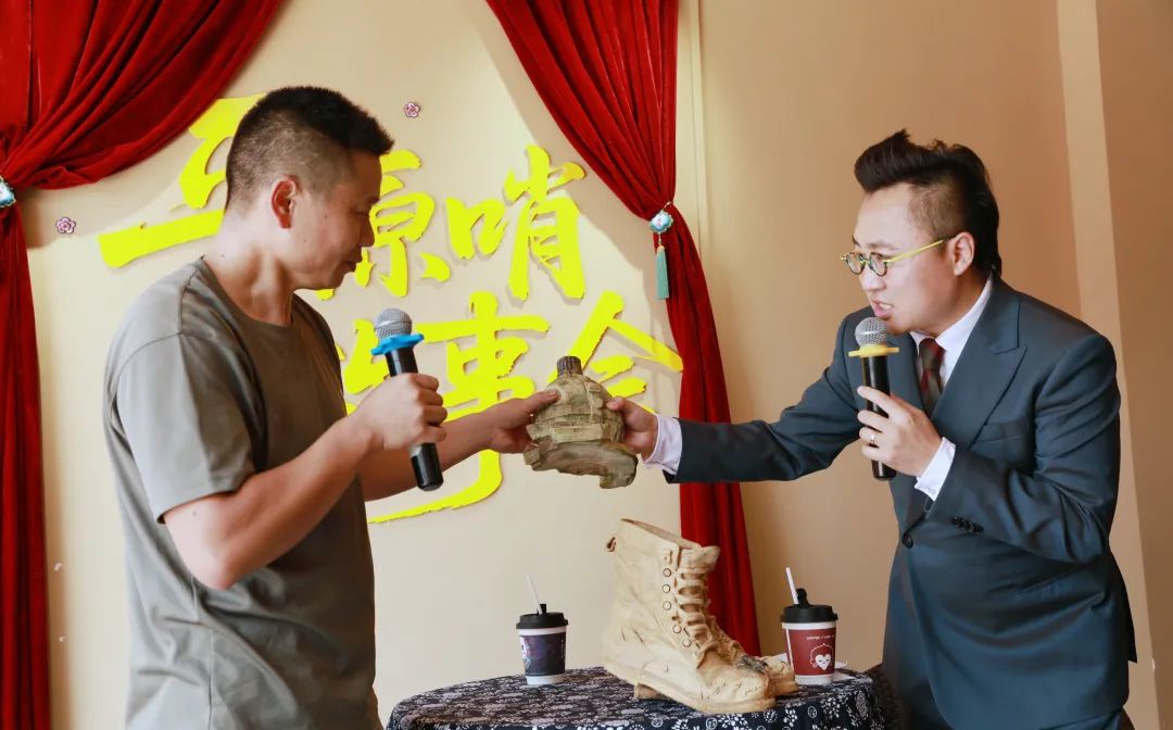 活动现场,大型“广大惺惺·哨咖”咖啡杯、刘吉武创作的军用水壶等特色装饰,搭配《我的祖国》纯音乐,营造出浓厚的怀旧与崇军氛围。随着贵州广播电视台著名主持人张建冲的精彩开场,这场备受期待的活动正式拉开序幕。