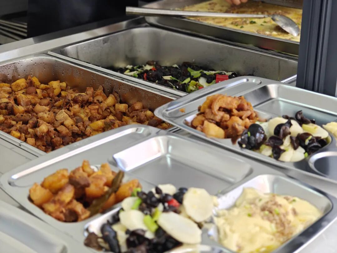 白云区第十八中学食堂历经从传统配餐、委托加工到“自办自管”的转型,实现更自主、更透明的运营管理。“自办自管意味着学校对食堂的管理更有自主权,能够更直接地把控食材采购、菜品质量和营养搭配。”学校相关负责人介绍,“我们每周将供应25种以上新鲜食材,定期更换食谱,每餐仅收8元,专款专用。”
