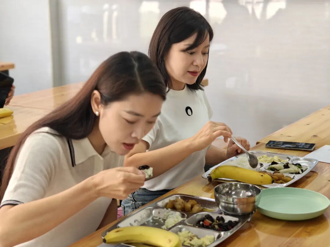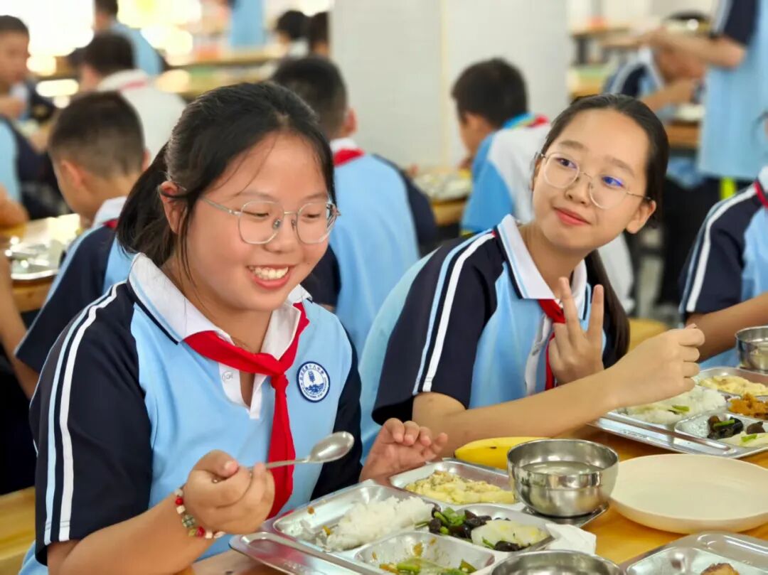 八年级学生朱佩祺用餐后感慨道:“色香味俱全,很合胃口!阿姨特别热情,饭不够还可以添。”九年级学生周清醇也连连点头:“不管量还是味道,体验感都很棒!”