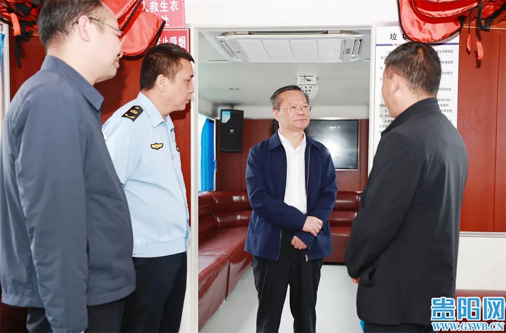 息烽县流长镇大塘码头是集红色文化、自然景观与现代旅游开发于一体的综合性区域。来到这里,胡忠雄沿乌江沿岸巡河,检查码头、船舶安全管理情况,听取水运安全工作汇报。他强调,企业要扛起主体责任,落实恶劣天气景区限流、客船限航等措施,抓好安全培训和隐患排查,提升本质安全水平。要落实属地责任和部门“三管三必须”要求,认真履行职责,以数字技术赋能安全监管;要加强河道巡查监管,抓好生态环境治理,确保河道防洪安全。