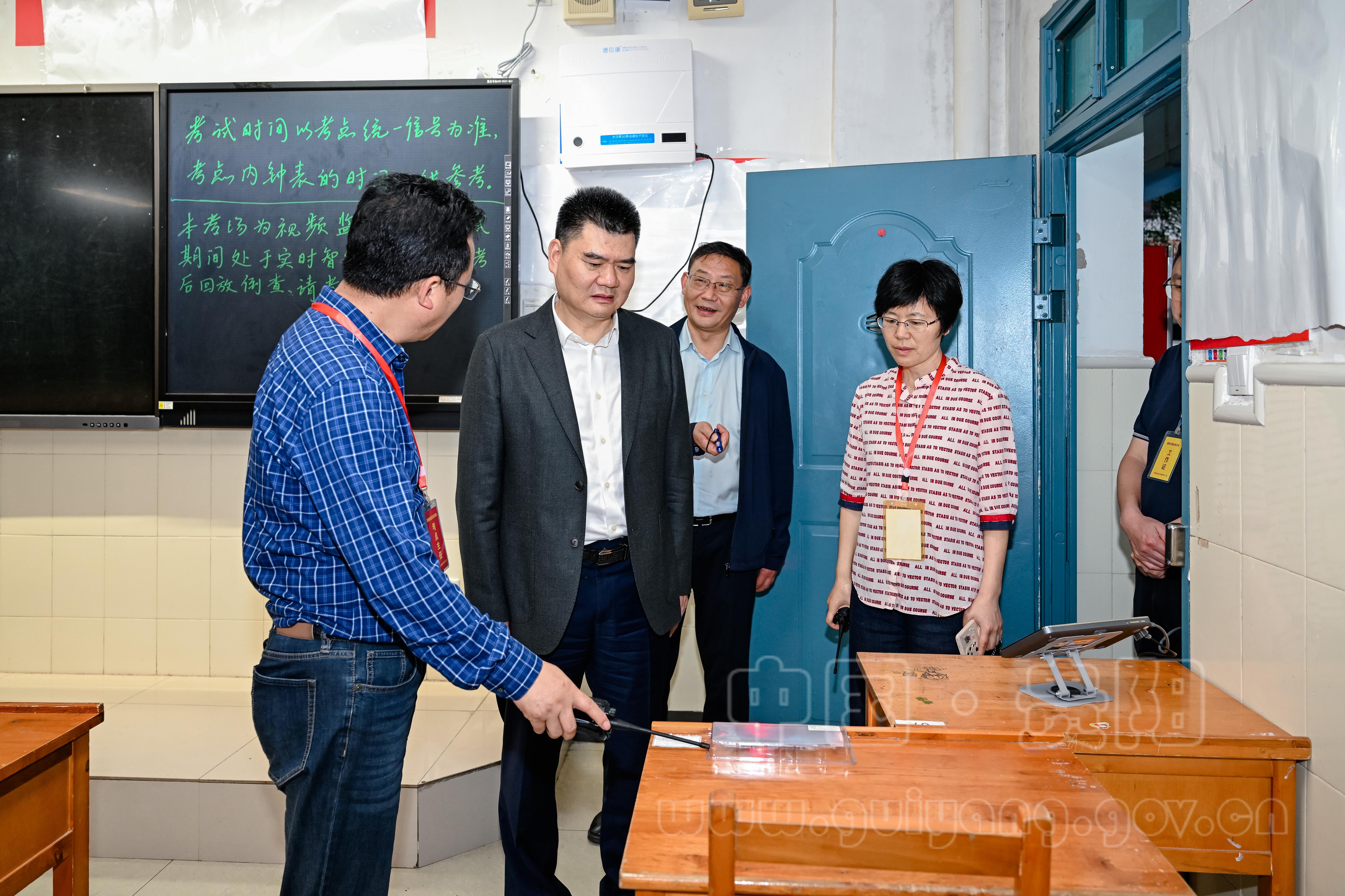 当天,王宏先后来到北京师范大学贵阳附属中学考点、贵阳一中考点,走进考点入口、考点指挥中心、试卷保管室、考场等功能场所,详细了解考生组织、视频监考系统运行、试卷保密管理、考场设置等情况。他叮嘱学校和相关部门要各司其职、协同联动,对全流程、各环节再检查、再细化、再完善,努力营造安全、安静、舒心的考场环境。